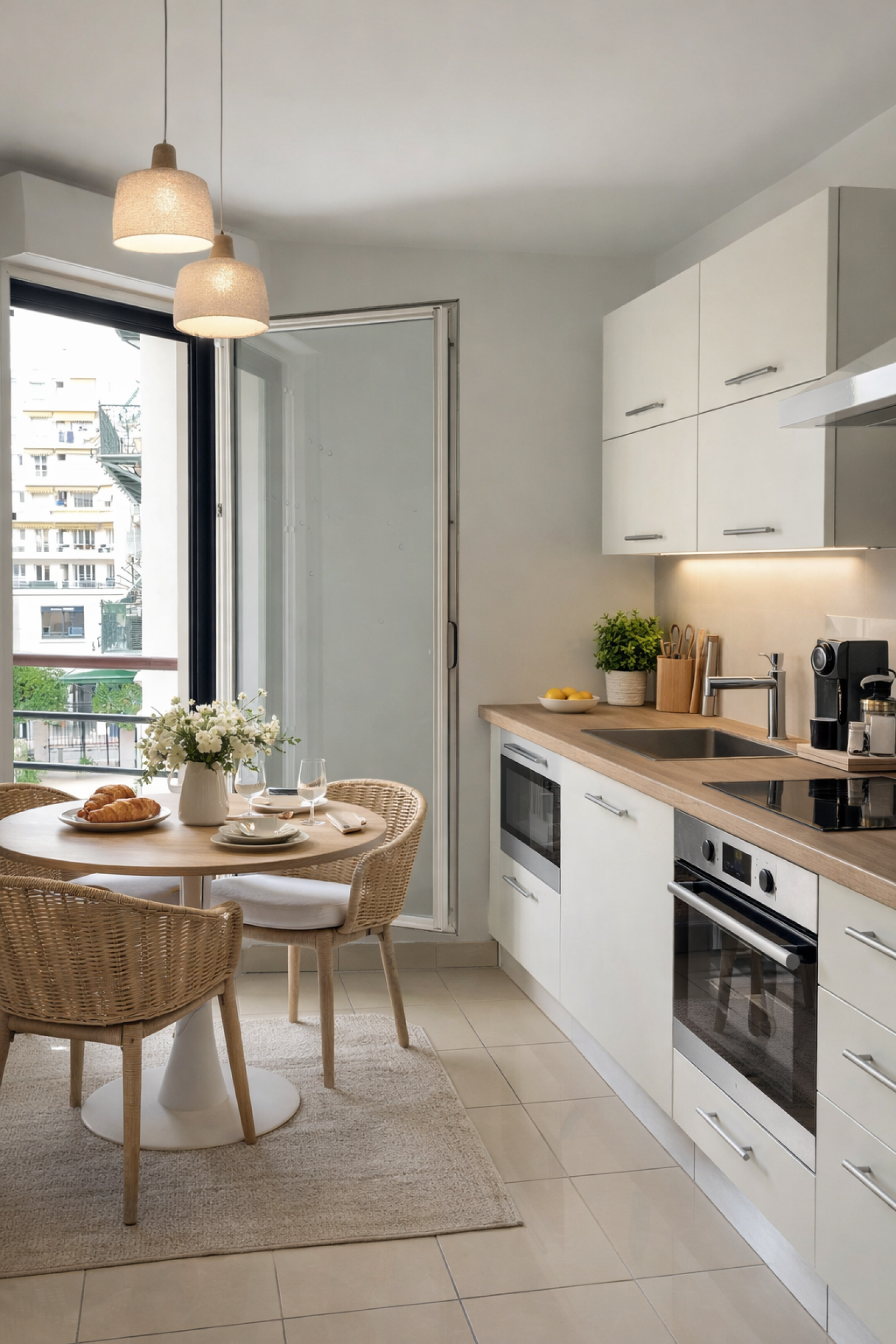 La cuisine indépendante, entièrement aménagée, allie fonctionnalité et élégance.