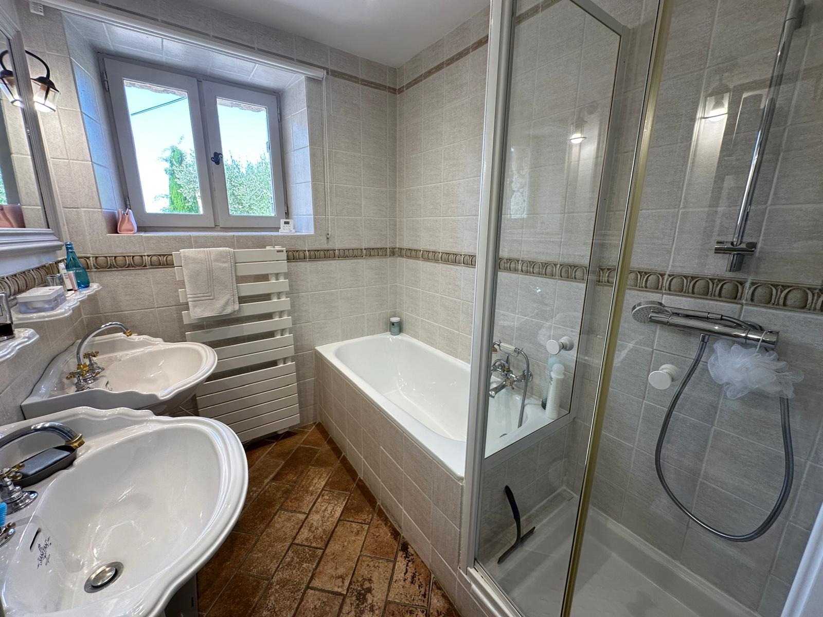 Le premier étage comprend un palier avec un coin bureau, deux chambres dont une avec dressing et offrant une vue panoramique sur la mer, le niveau comprend également une salle de bain avec douche et d'un WC équipé d'un lave main.