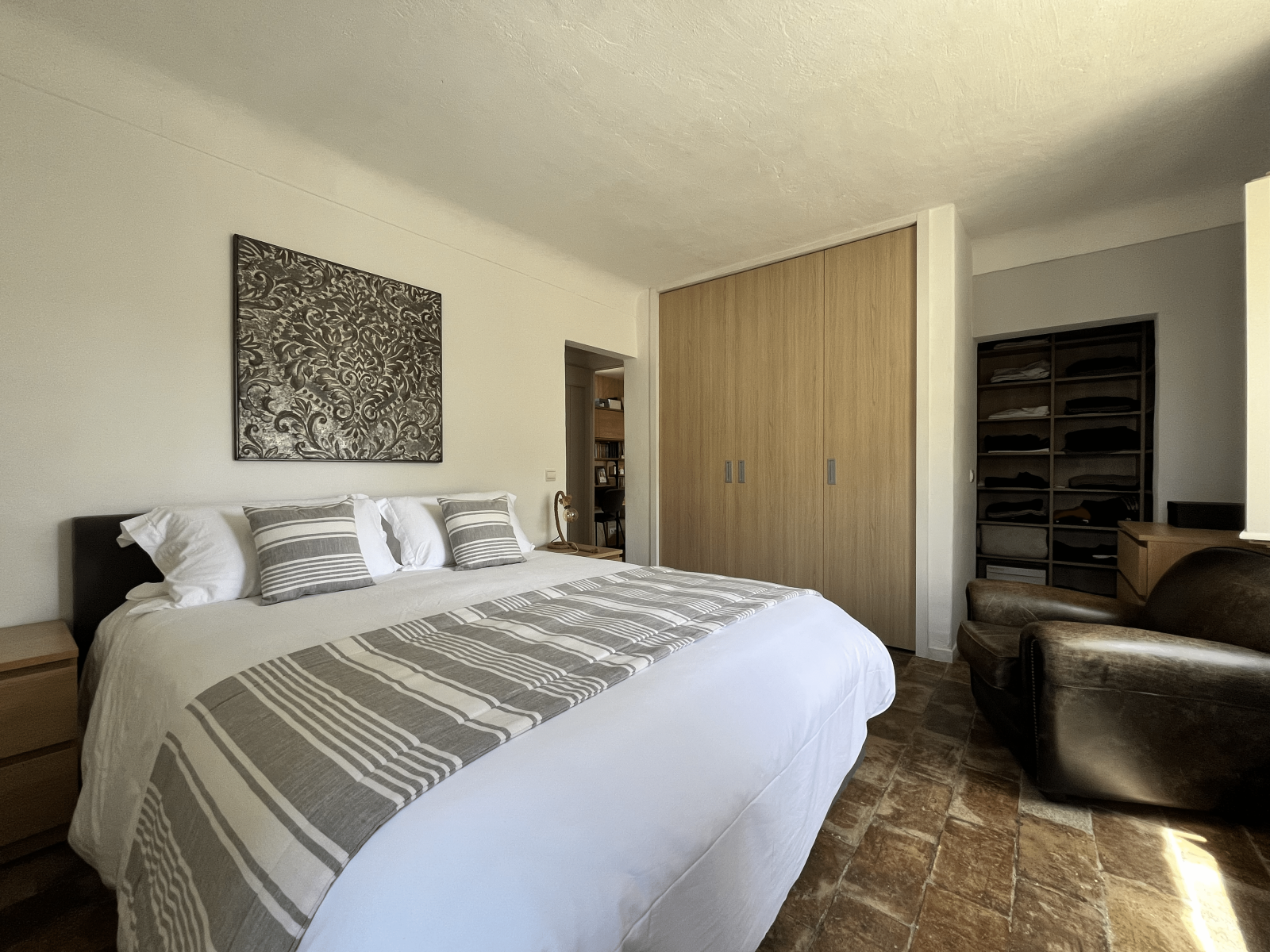 The second floor features two bedrooms, including a master suite with walk-in closet, also benefiting from panoramic sea views. Each room is air-conditioned and equipped with double-glazed windows, guaranteeing optimum comfort all year round.